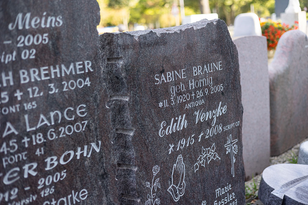 Wir berücksichtigen auch kulturelle oder religiöse Besonderheiten, etwa christliche Symbole, Lebensdaten in hebräischer oder kyrillischer Schrift oder arabische Namenszüge. Für uns ist es selbstverständlich, auf diese Wünsche mit Sorgfalt und Respekt einzugehen.